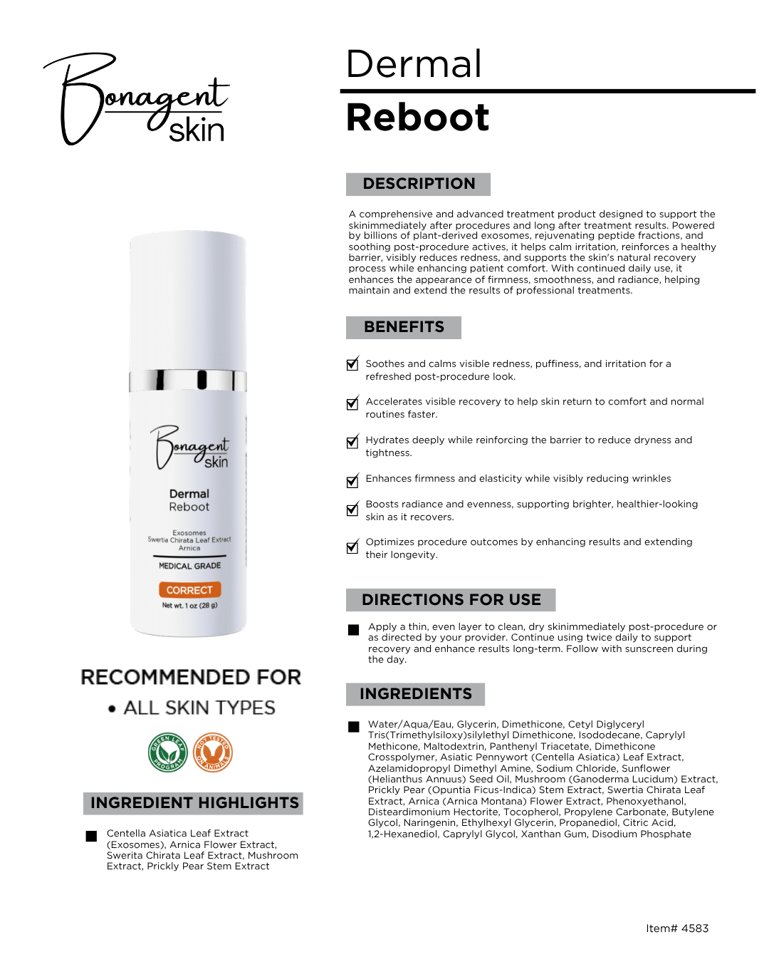 Directions: Apply a thin, even layer to clean, dry skin immediately post-procedure or as directed by your provider. Continue using twice daily to support recovery and enhance results long-term. Follow with sunscreen during the day.