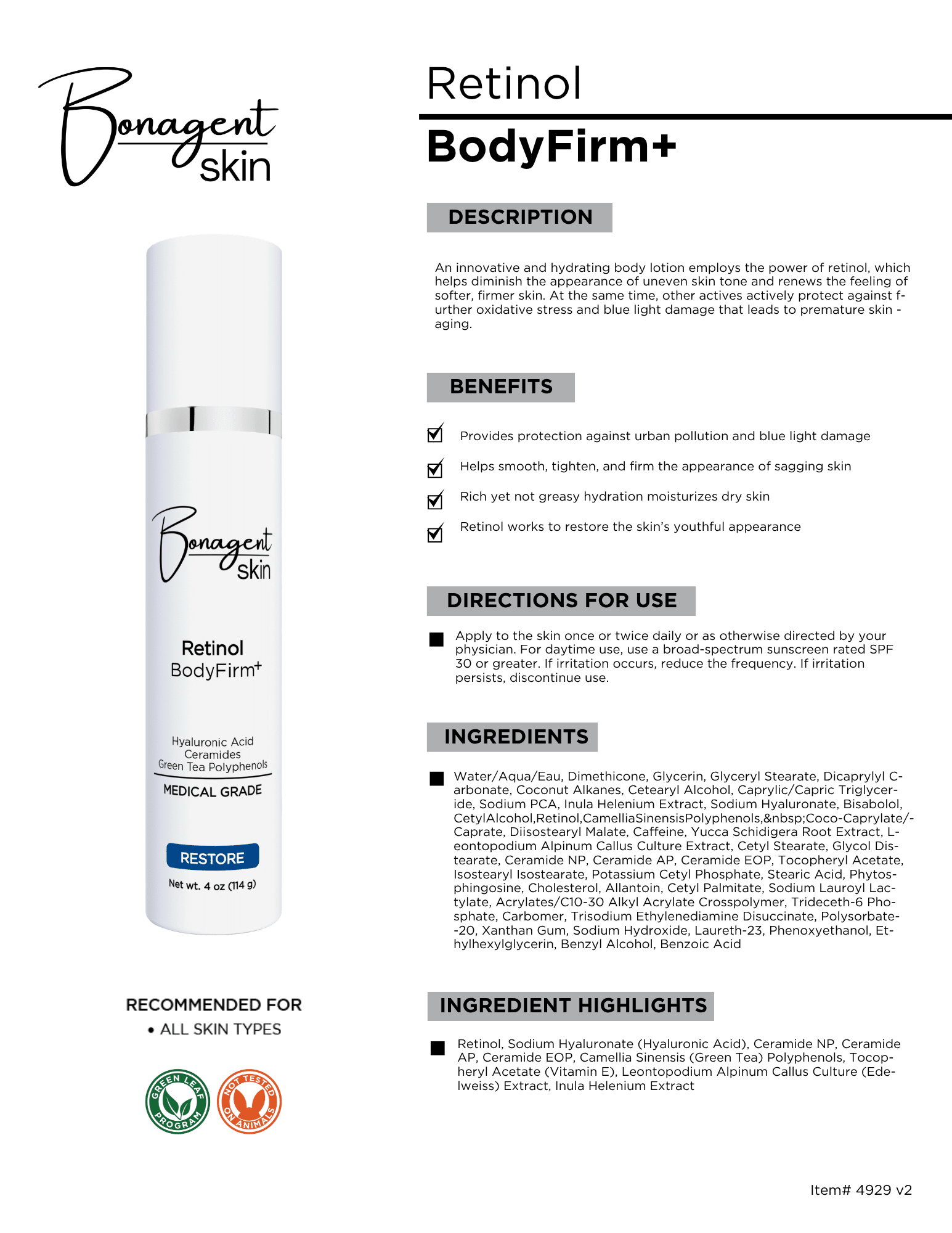 - Helps smooth, tighten, and firm the appearance of sagging skin